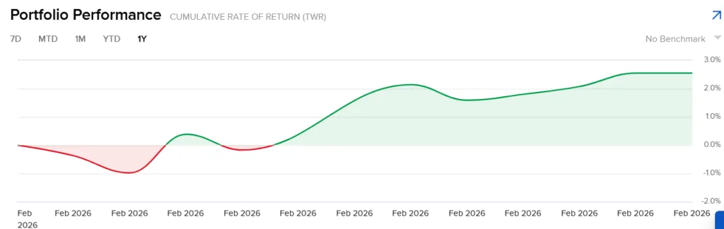 Yllä Interactive Brokers salkun kehitys % 1.3.2026.