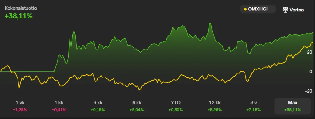 Yllä Nordnet salkun kehitys % 1.3.2026.
