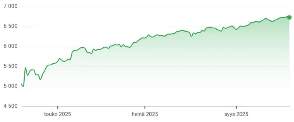 SP500 on nyt korkeammalla kuin koskaan. Kun se tulee alas – ja se tulee – moni säikähtää. Mutta viisas sijoittaja tietää, että jokainen romahdus on vain uusi ostopaikka, uusi kierros pitkässä pelissä. Tärkeintä ei ole arvaaminen, vaan se että pysyt mukana, kun pöly laskeutuu. Ja jos hermot eivät kestä, korkorahasto tarjoaa pehmeämmän laskun. Sijoittaminen ei ole sprinttiä, vaan maraton, ja juuri nyt olemme mäen päällä, missä maisemat ovat parhaat mutta happi vähissä.