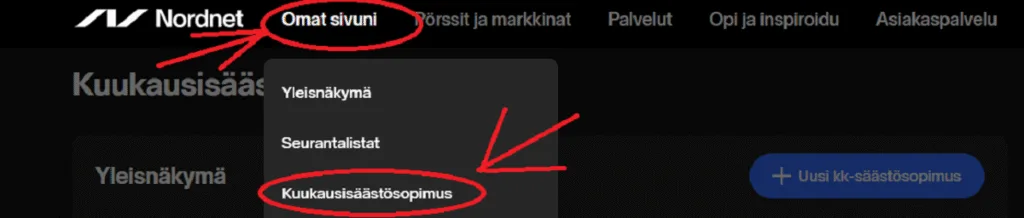 Kun painat tuota linkkiä, pääset helposti painamaan “Uusi kk-säästösopimus” nappia, ja asettamaan kuukausisäästösi.