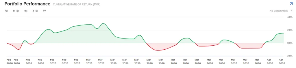 Yllä Interactive Brokers salkun tuotto %. 17.2.2026 – 3.4.2026.
